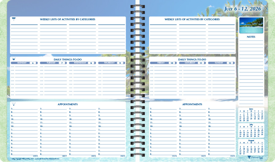 See all your plans for the entire week on two pages. Helps you think in a logical order. Makes it easy to decide what deserves your attention. Funnels events from idea stage to point of action. A productive work flow is established. You work smarter.